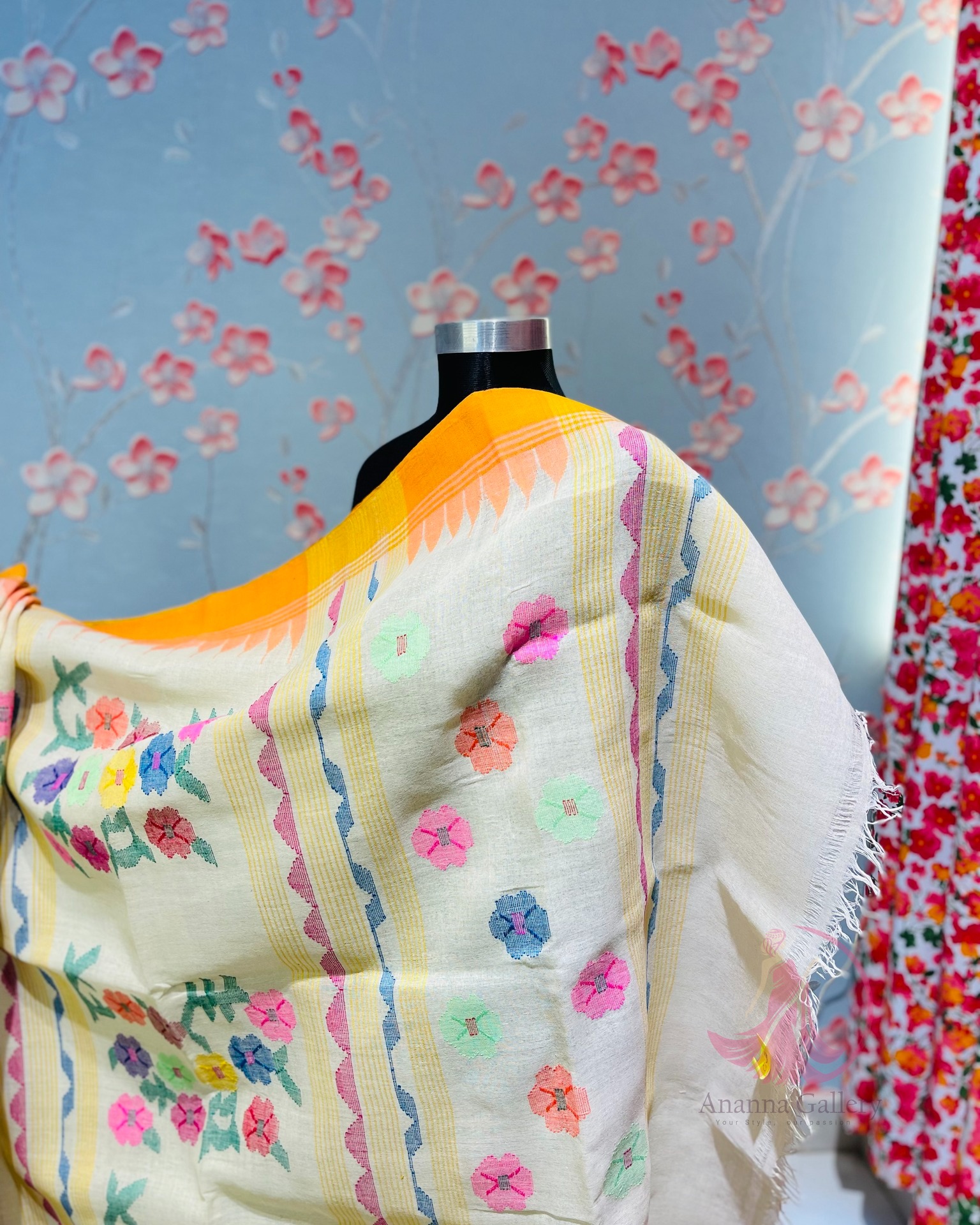 Be the first to review “Floral Yellow and Orange Monipuri Saree”
